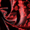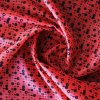Siyah Zemin Üzerine Ekru, Kırmızı Damla Desen Polyester Saten Empirme Astar Kumaş