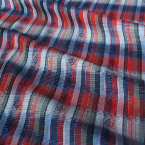 Lacivert Kırmızı Kareli Polyester İpliği Boyalı Astar Kumaş