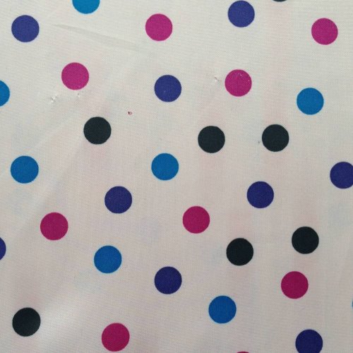Beyaz Zemin Üzerinde Mavi, Fuşya, Siyah Renk Puanlı Desen Astarlık Kumaş